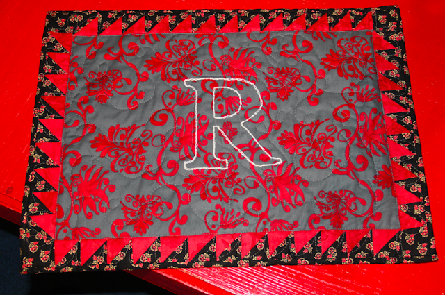 My best friend's Birthday is Sunday, so we are bringing along her gift... Boo embroidered their last name Initial, so that I could make it into a table top rummer thing-a-ma-job...